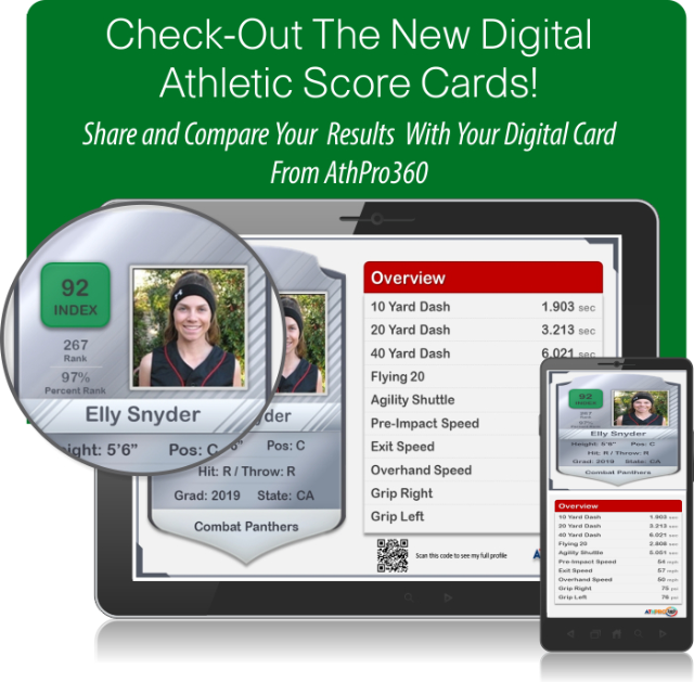 AthPro360 is the recognized national leader in player performance measurables. The results of our tests are used by all serious athletes for both developmental growth and recruit profiling and promotion. Using patent pending combine testing drills, evaluations techniques and algorithms, each metric is used to create a corresponding Athletic Performance Index (API) and Skill Performance Index (SPI) for each player tested.